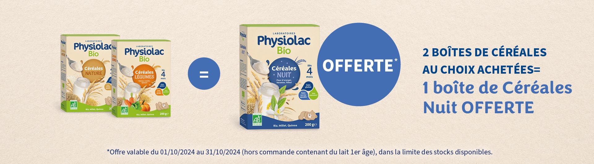 Physiolac c’est aussi des laits infantiles, des céréales Bio et des biscuits Bio.